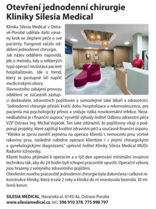 Otevření jednodenní chirurgie Kliniky Silesia Medical